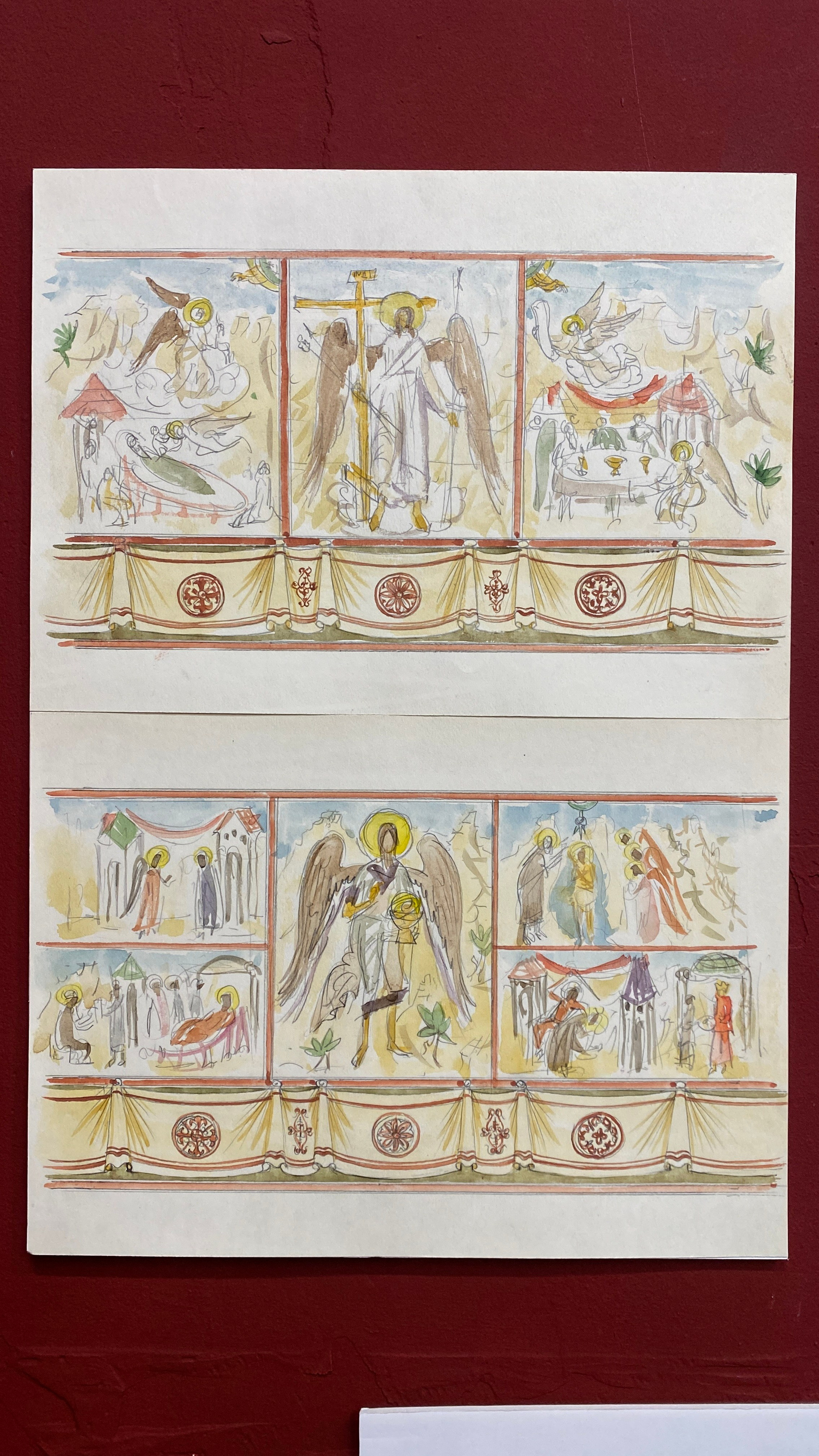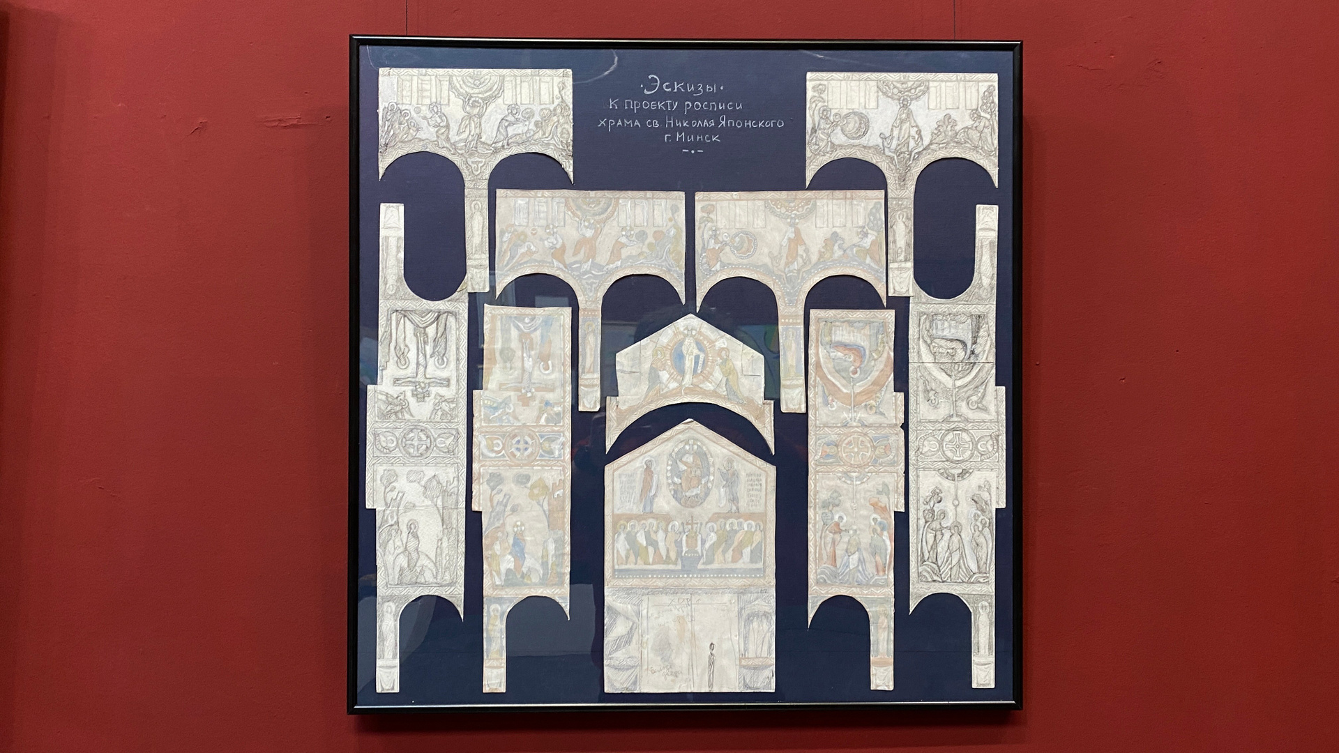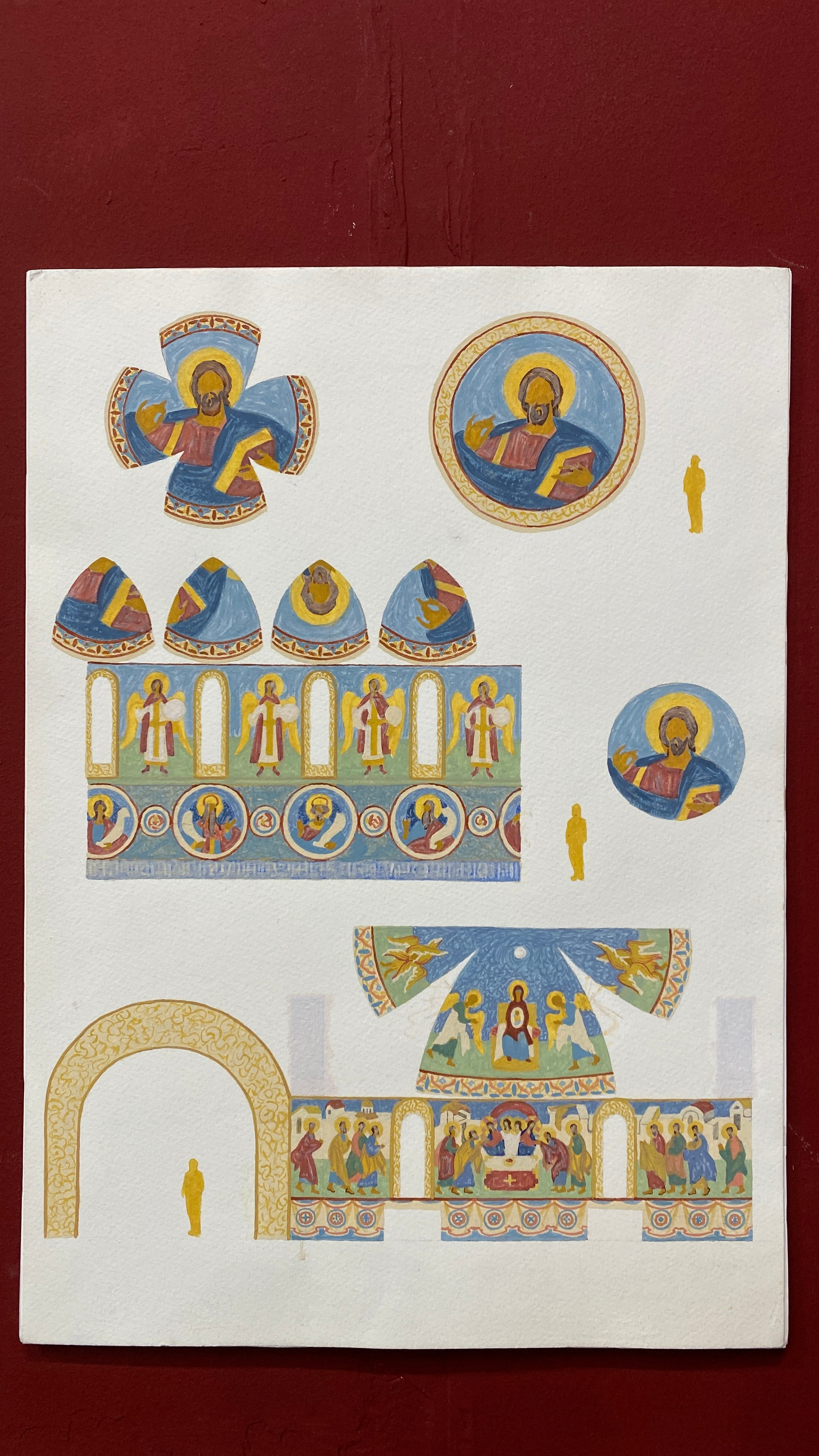 Графические листы, наброски, коллажи, цифровые распечатки проектов для мозаик, фресок, витражей.