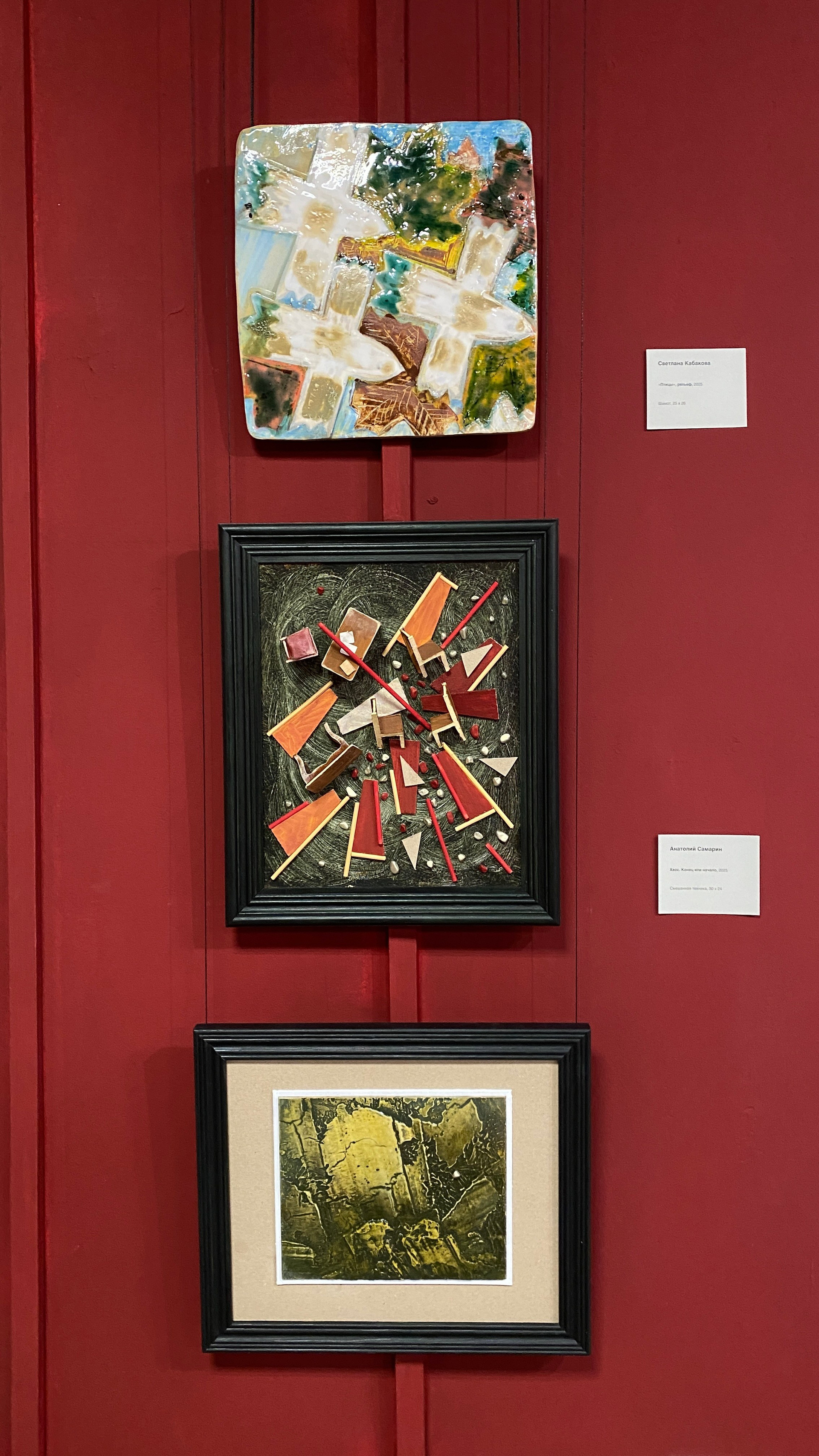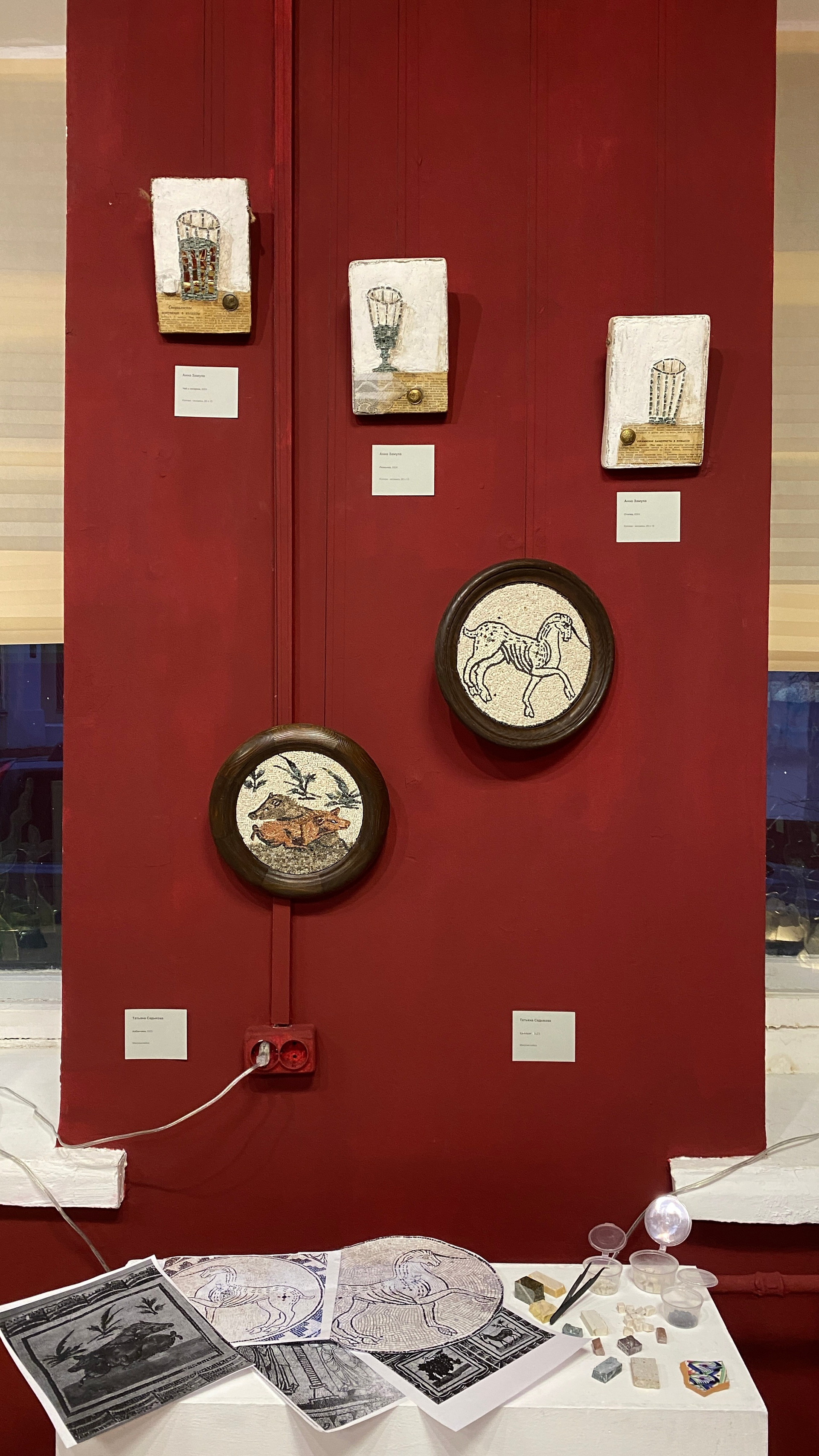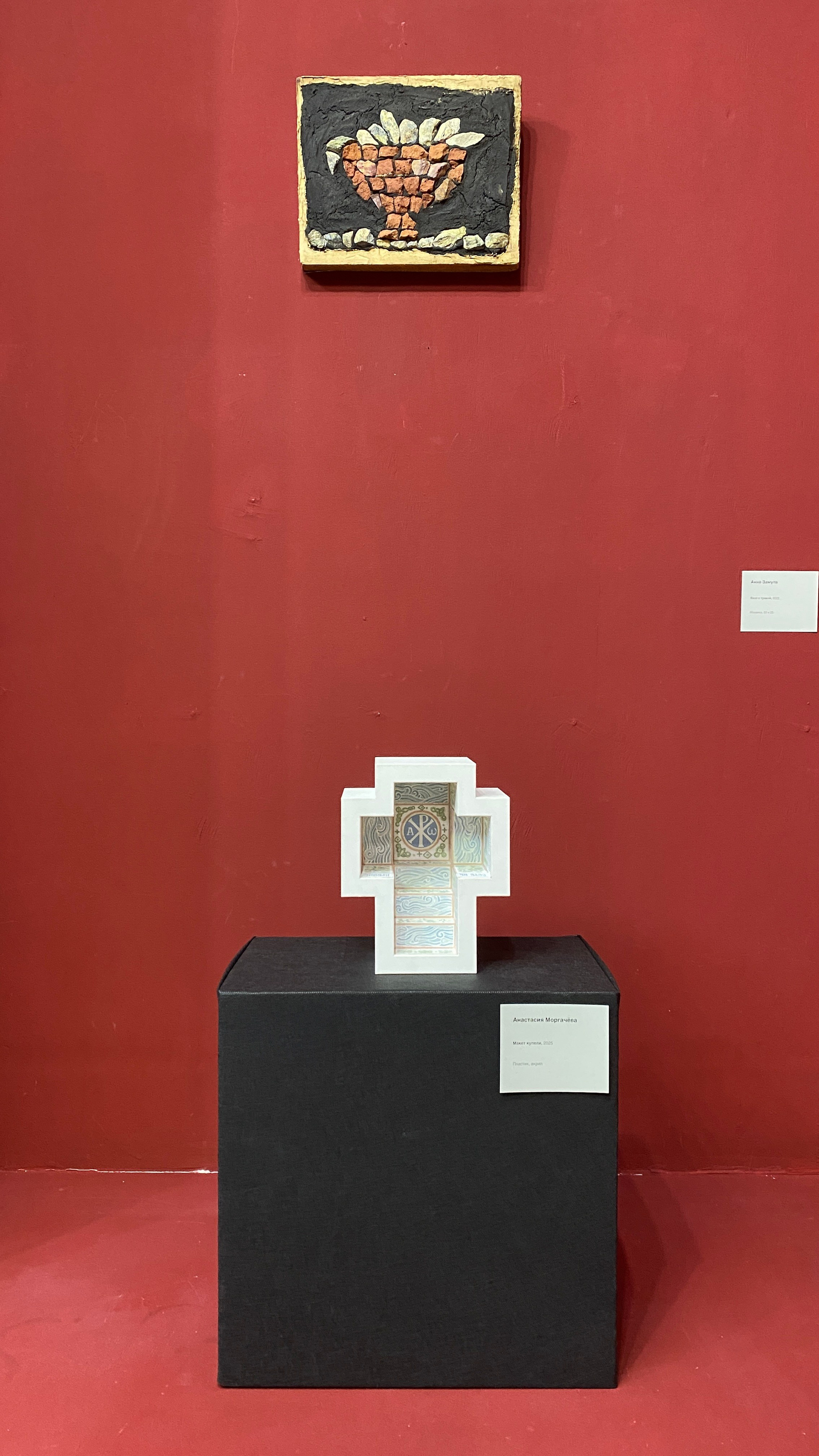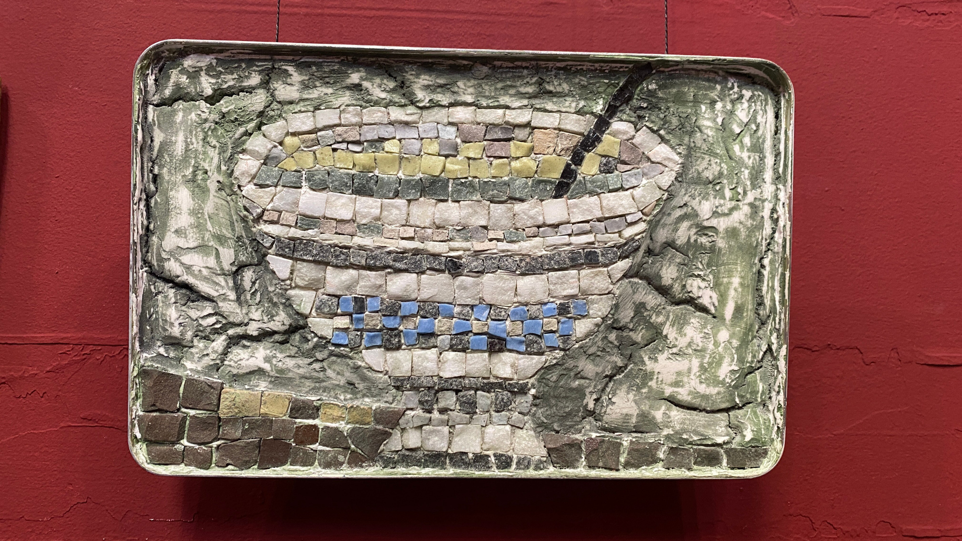 Что это: Образцы материалов: смальта, натуральный камень, фактурные штукатурки, образцы керамики, используемые в монументальном искусстве, но представленные в виде небольших фрагментов или в составе малых работ.
