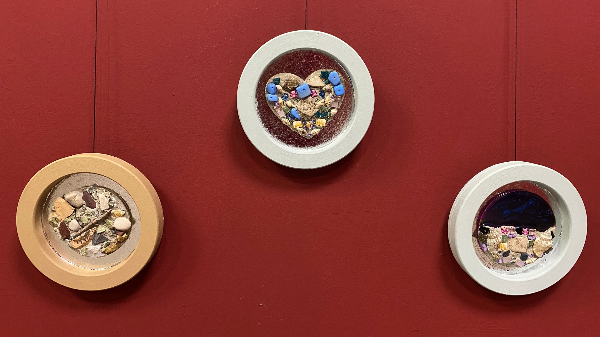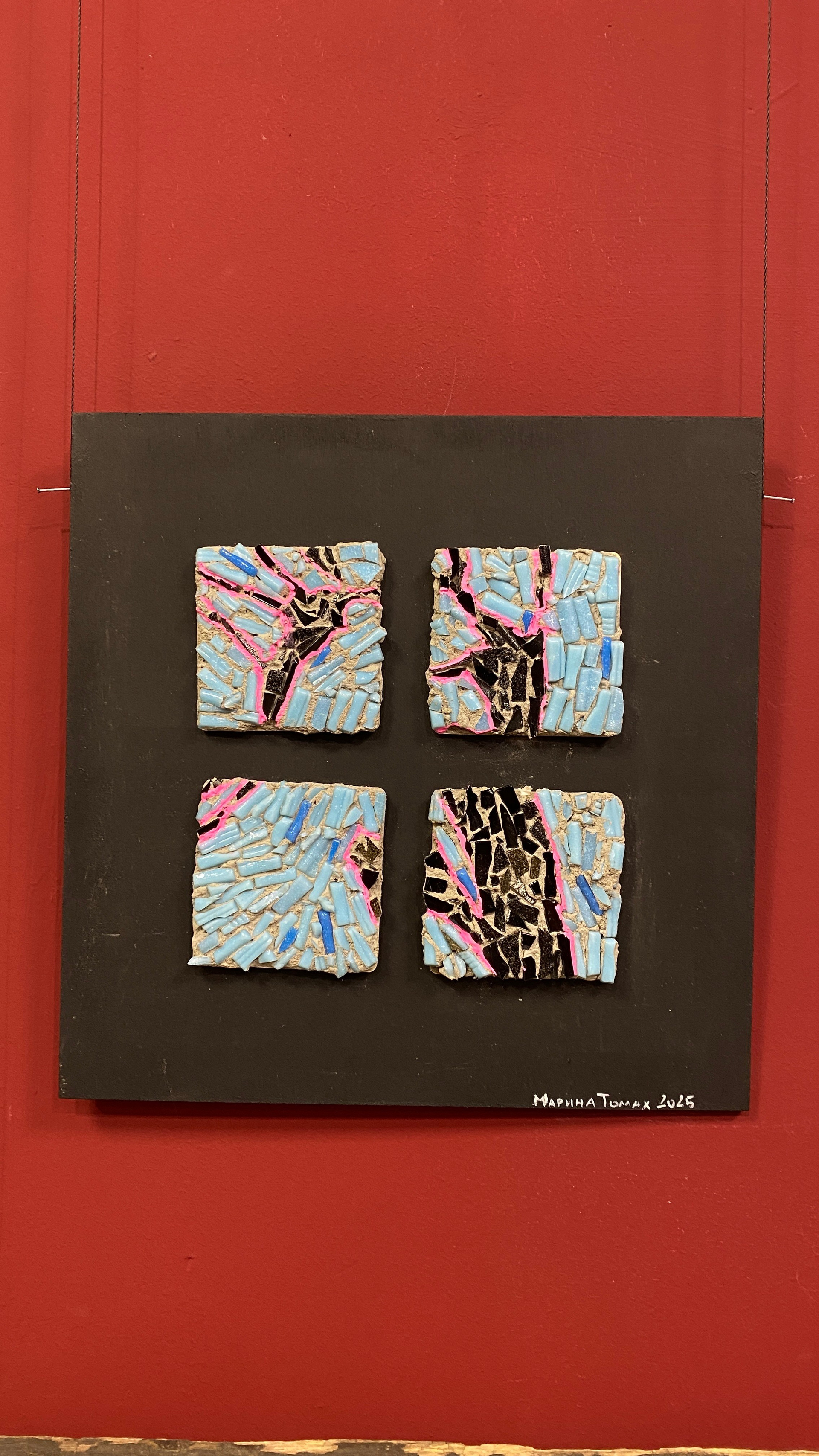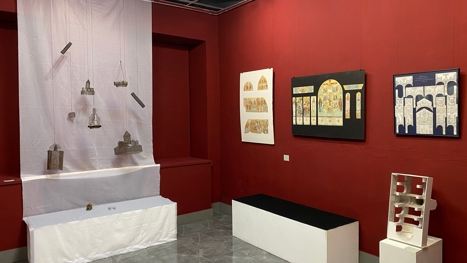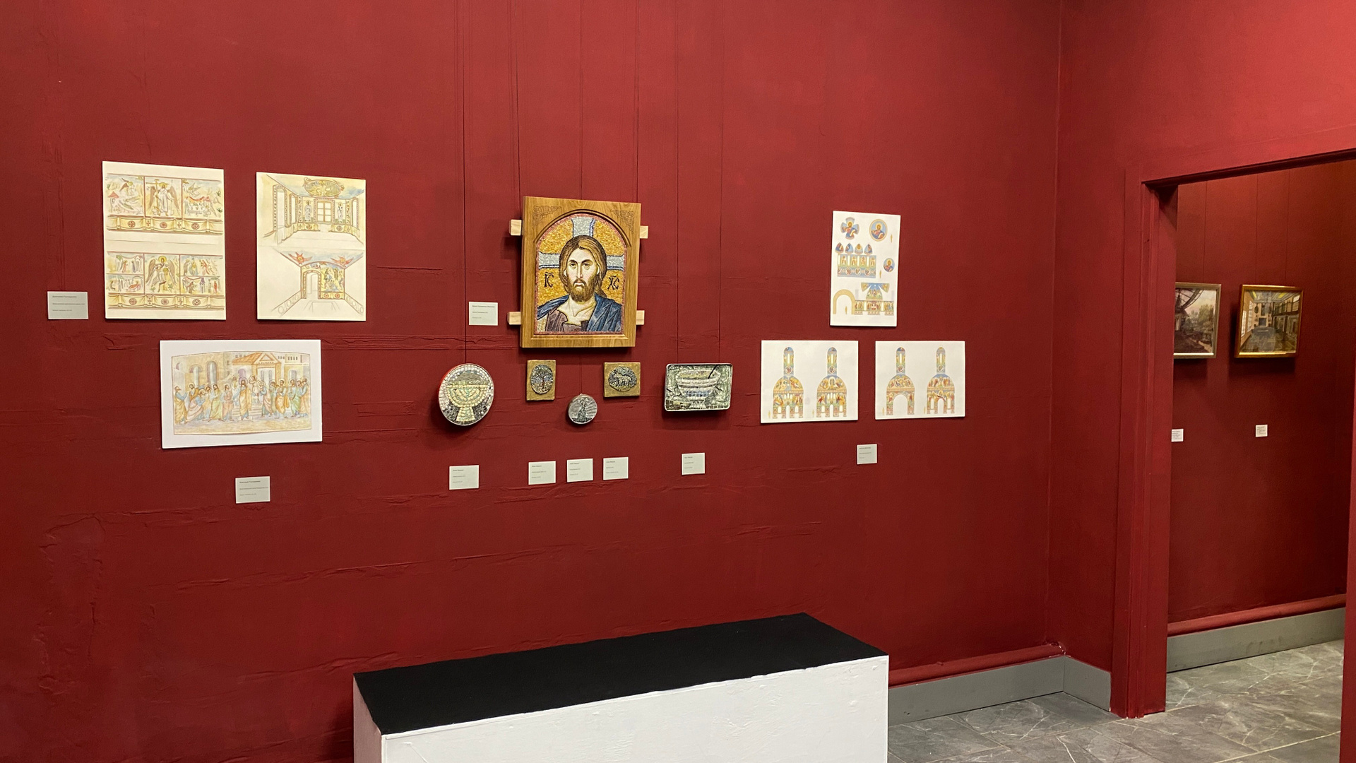 Что это: Образцы материалов: смальта, натуральный камень, фактурные штукатурки, образцы керамики, используемые в монументальном искусстве, но представленные в виде небольших фрагментов или в составе малых работ.