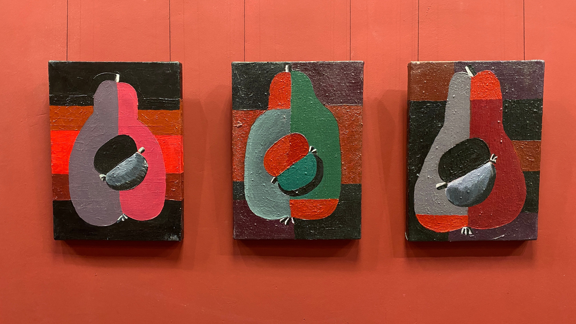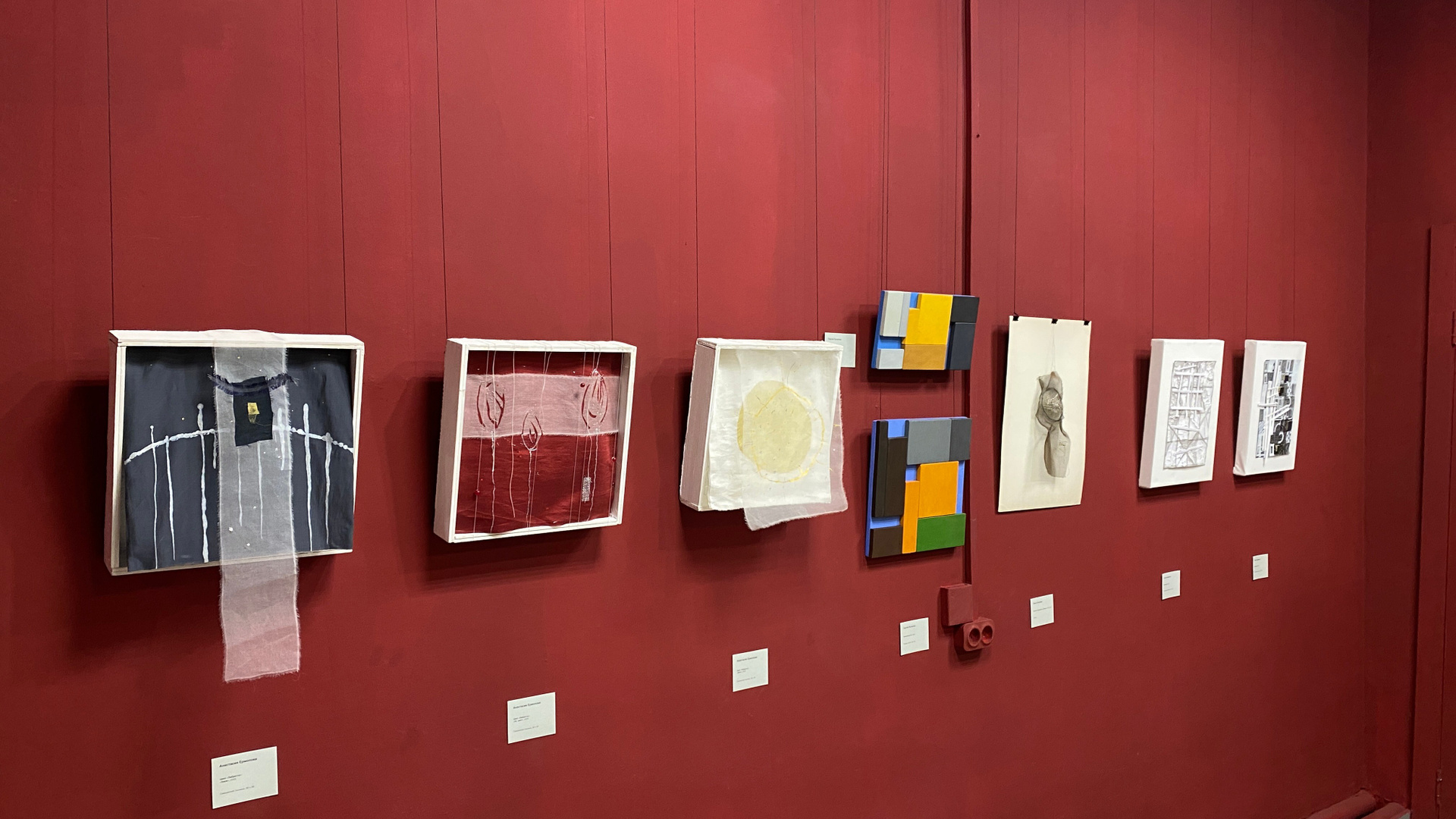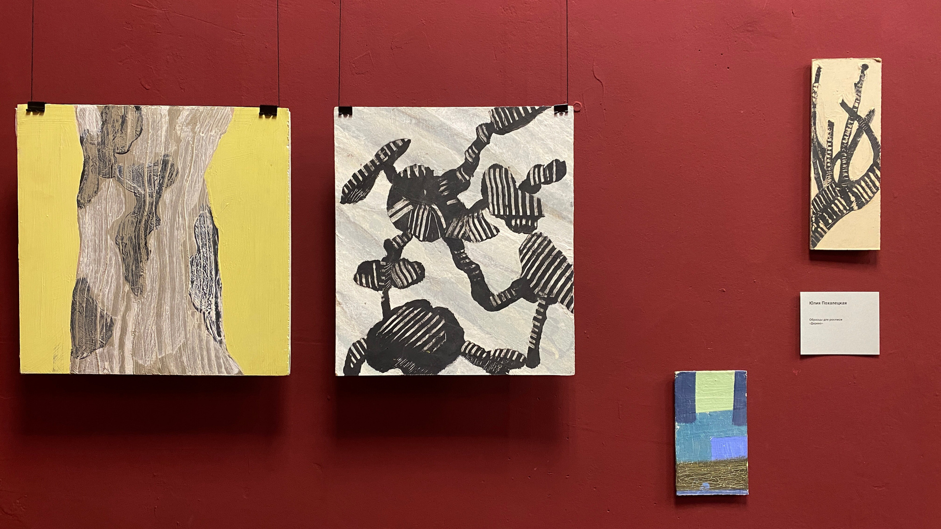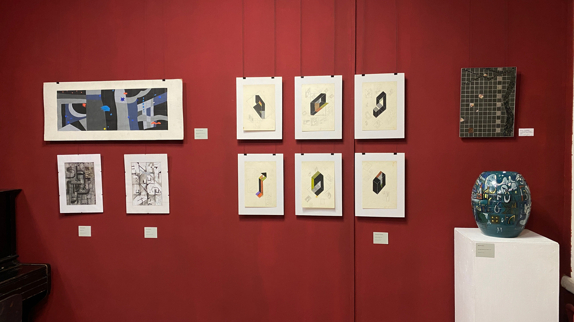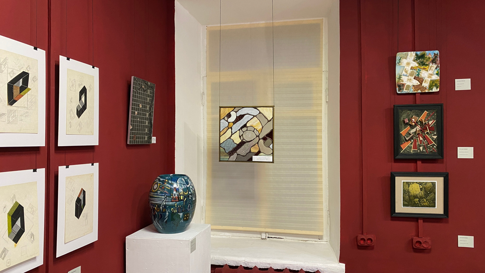 Ядро выставки. Доказательство того, что мышление монументалиста проявляется в любой форме. Эти работы самодостаточны, но при этом обладают мощным «эффектом масштабирования» — глядя на них, легко представить их увеличенными до размера стены.